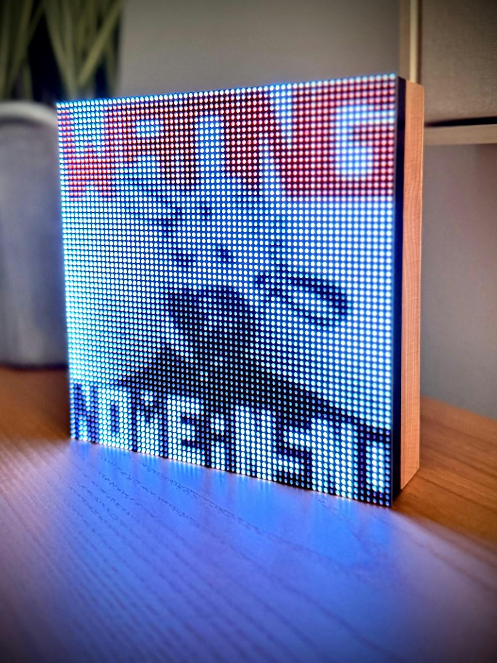 - 6.3" x 6.3" square LED display, 1.57" thick (16cm x 16cm x 4cm)